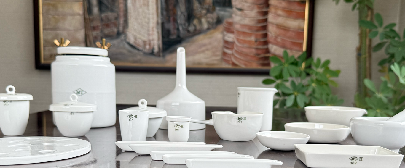 理化学磁器は加熱時の割れ率を軽減する為に肉厚を薄くしてありますので、市販の陶磁器より衝撃に弱い点を考慮して頂き取扱いには十分ご注意願います。